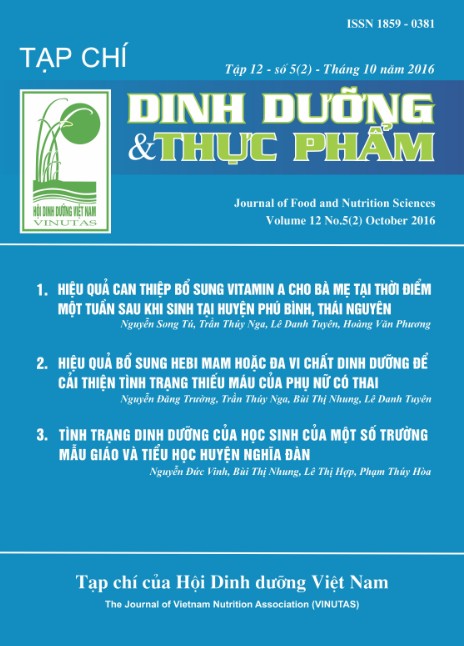 Hoàng TN, Nguyễn TL, Từ N, Phí NQ, Dirren H, C. King J. HIỆU QUẢ CAN THIỆP BỔ SUNG THỰC PHẨM CHO PHỤ NỮ TRƯỚC VÀ TRONG KHI CÓ THAI TỚI TÌNH TRẠNG DINH DƯỠNG VÀ THIẾU MÁU CỦA TRẺ 24 TUẦN TUỔI. Tạp chí Dinh dưỡng và Thực phẩm. 2016;12(5.2):23-30. Truy cập Tháng Hai 14, 2026. https://tapchidinhduongthucpham.org.vn/index.php/jfns/article/view/666